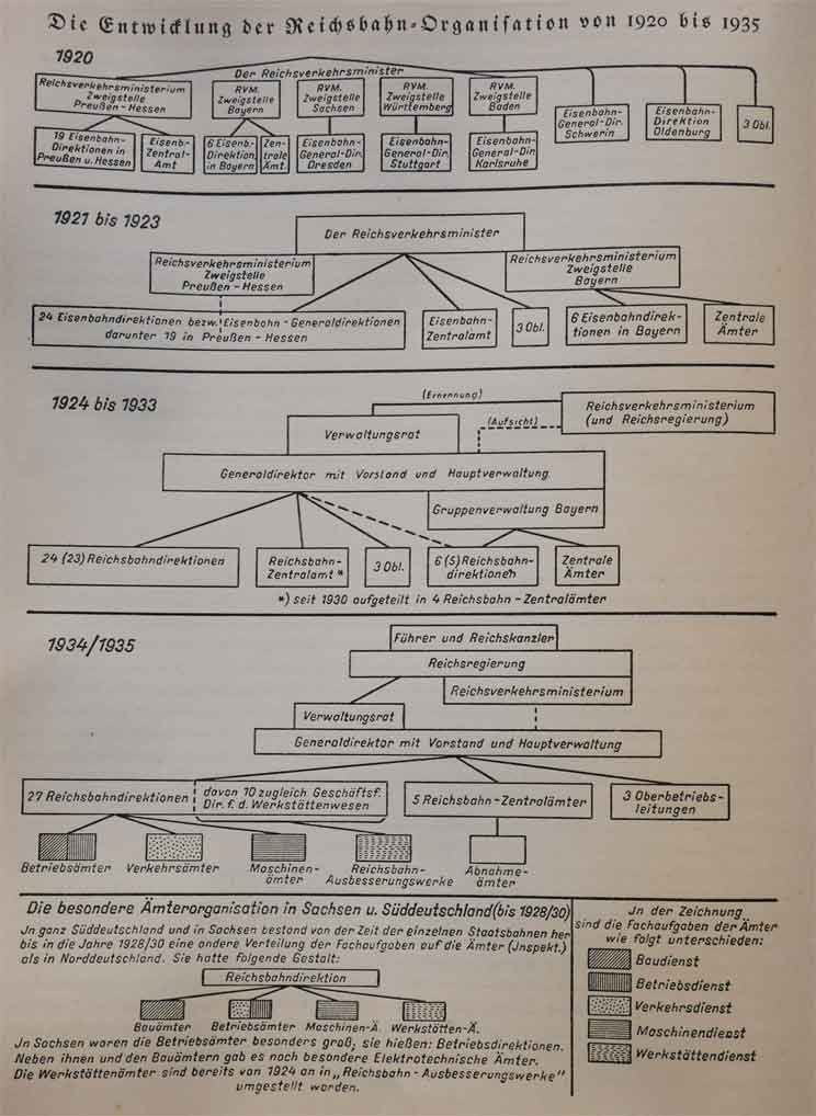 Eine Reichsbahn im Sinne einer einheitlichen, straff organisierten und zentral gelenkten Bahn gab es nicht. Grob kann man folgende Epochen unterscheiden.